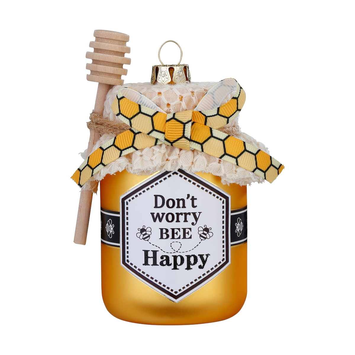 Christbaumschmuck Glas 11cm Honigglas mit Löffel & Schleife Figur zum Aufhängen - Weihnachtsbaum Anhänger Weihnachten Weihnachtsbaumschmuck Essen Gelb