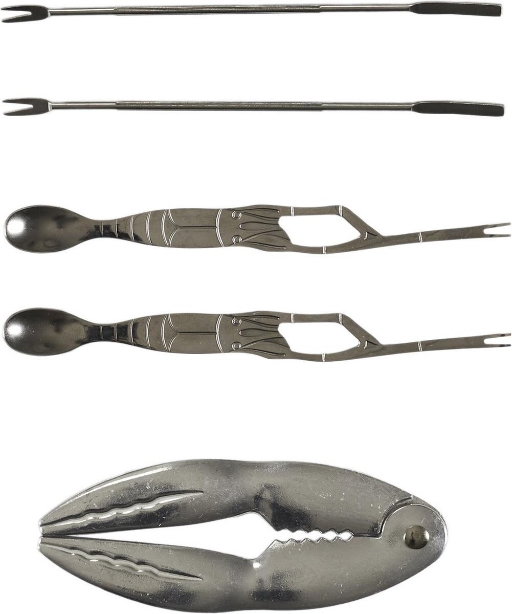 WDMT 5-teiliges Meeresfrüchte-Besteckset – Inklusive Edelstahl-Krabbenknacker, Löffel und Schaber – Silber