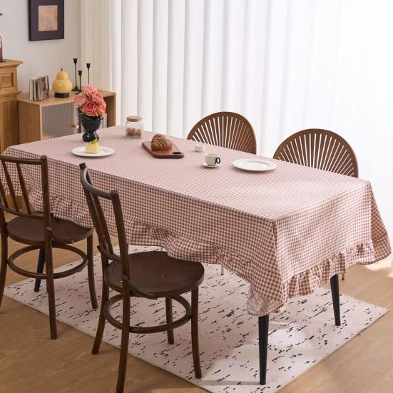 Retro Plaid Ruffle Tablecloth Cotton Linen Farmhouse Table Cover Rustic Machine Washable Tablecloth for Dining Room Garden Party Wedding Baby Shower b