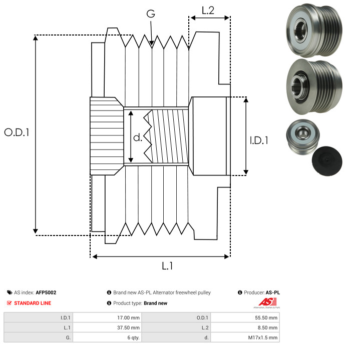 AS-PL Generatorfreilauf für MITSUBISHI MAZDA SUBARU LF18-18-W11A 1800A061 LF18-18-330 AFP5002