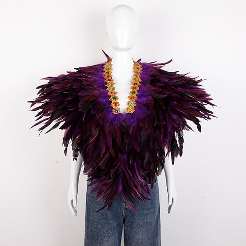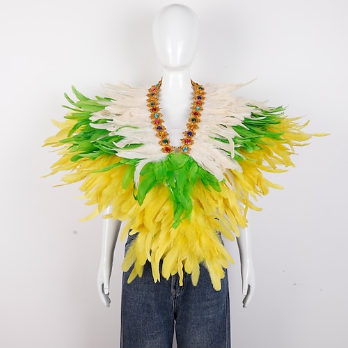Accessori Samba del Carnevale 2026 Rio Carnevale Cappotto Sciarpa in Piume per Mardi Gras in Viola Verde Oro Poncho in Piume con Collare Gioiello per Donne Costume per Performance al Festival del