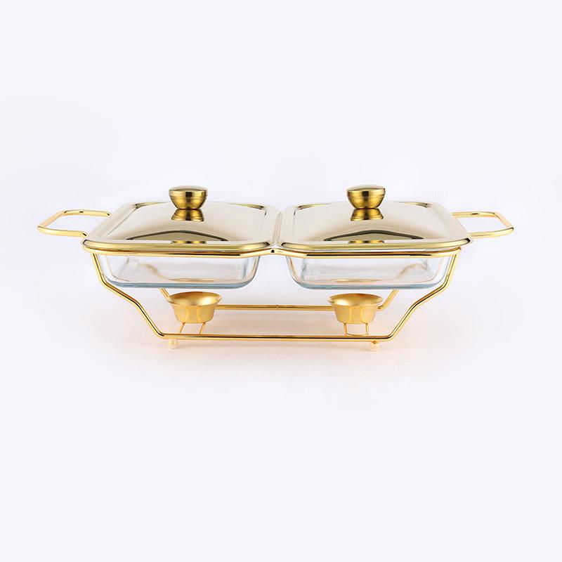 Alcohol Pot Restaurant Glass Food Heating Container Large Capacity Buffet Stove Gold/Silver Rectangular Glass Pot