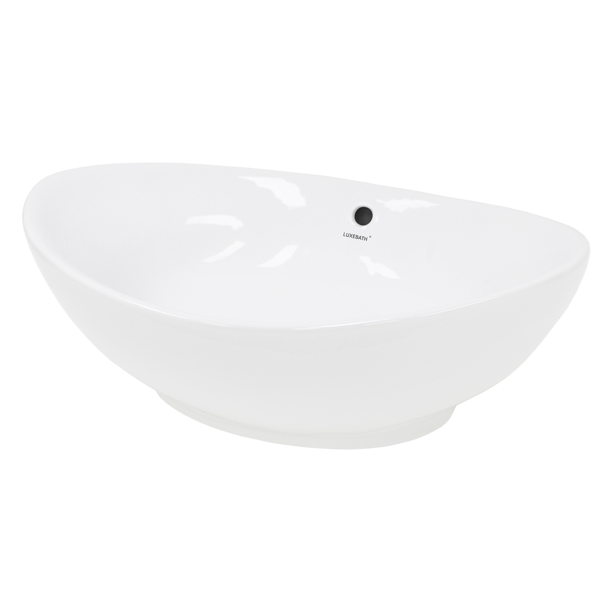 LuxeBath ECD Germany Aufsatzwaschbecken Keramik Weiß 590 × 390 × 200 mm, oval – inkl. Ablaufgarnitur