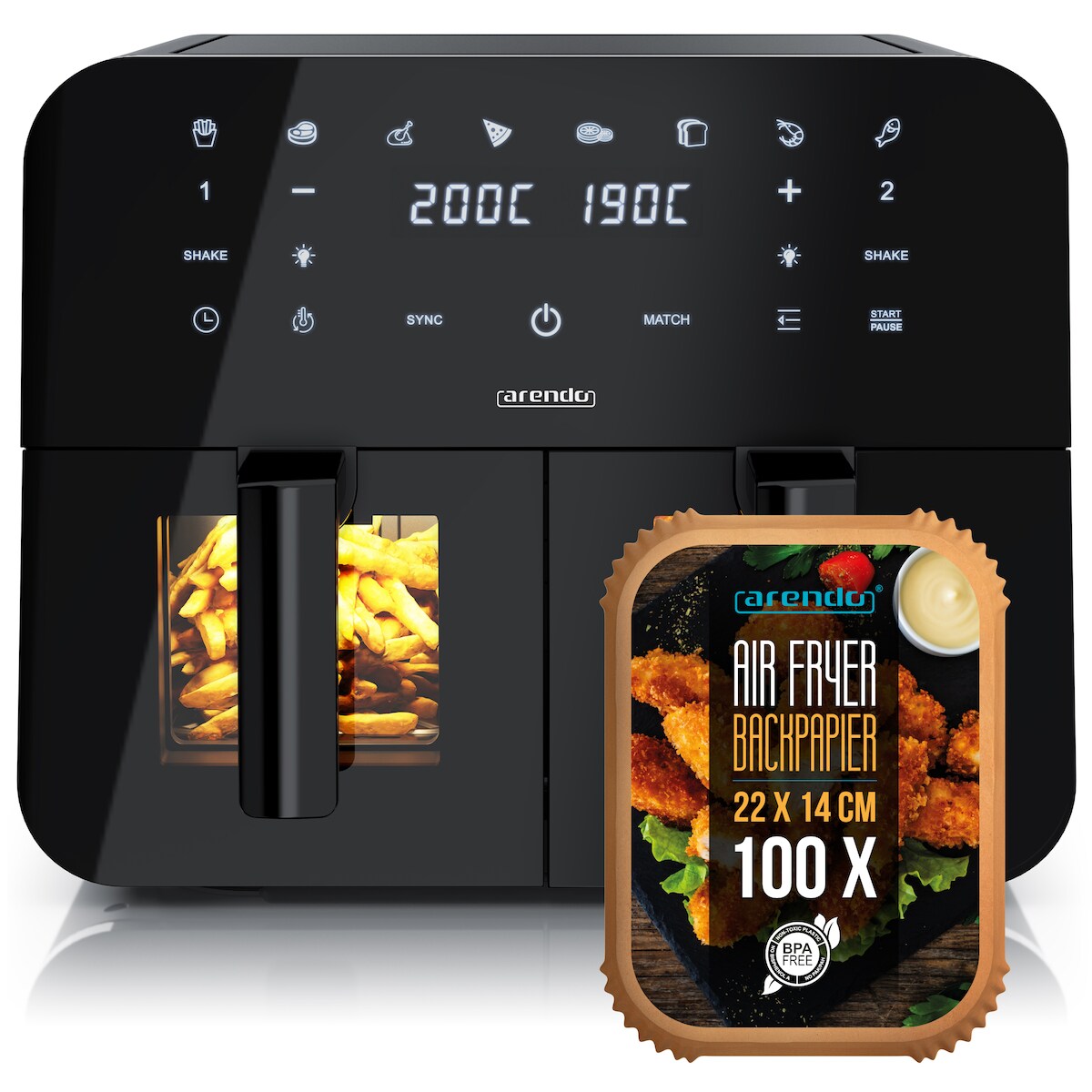 Gutfels AIRFRY5010 Heißluftfritteuse Schwarz-Silber | 2600 W | 8,5 L / 2x 4,2 L Fassungsvermögen | Match Cook | Smart Finish
