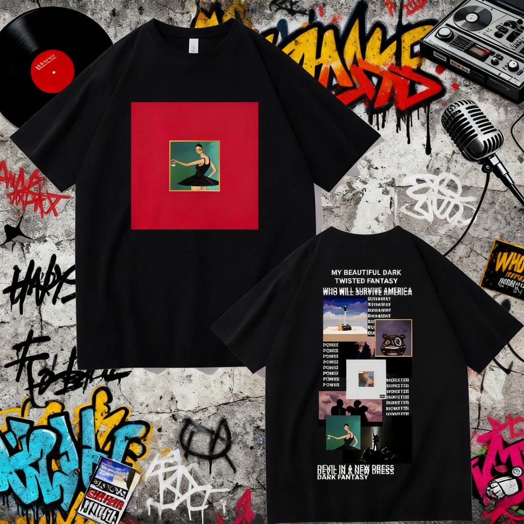 Rapper Kanye West My Beautiful Dark Twisted Fantasy Cover T-shirt Donda College Dropout T-shirt Heren Hip Hop Katoen Retro Top cm