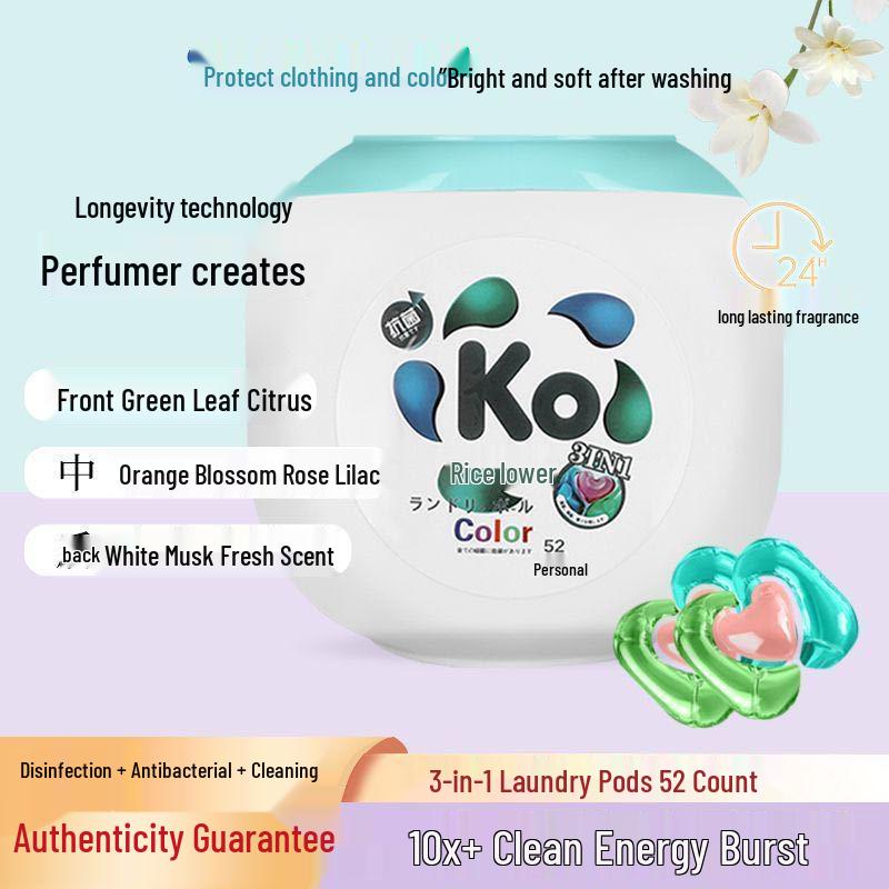 KO 3-in-1 Laundry Pods: Sterilization, Softening, Antibacterial Cleaning with Long-lasting Freshness.