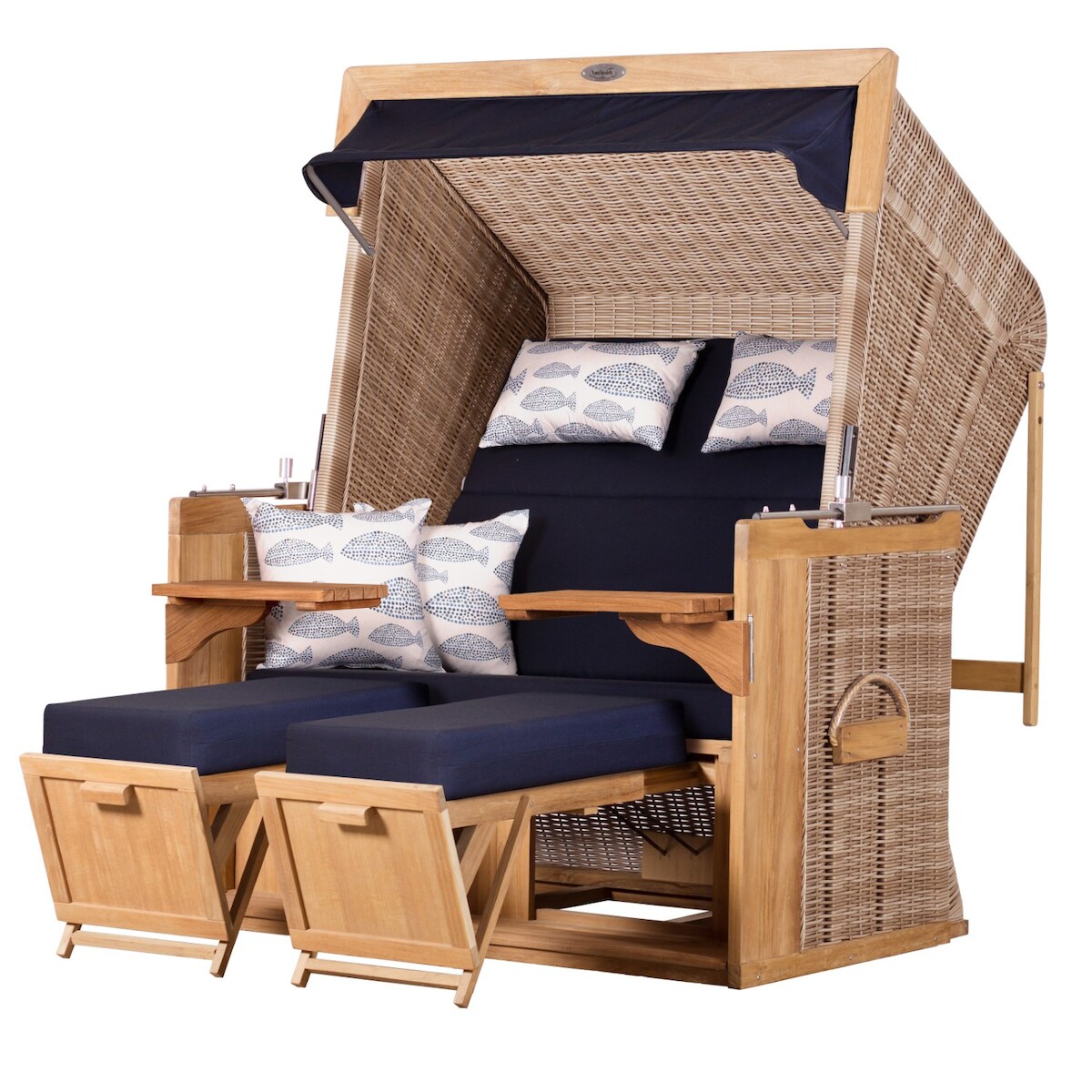 dekoVries GmbH Strandkorb deVries PURE® Friesland Sylt XL - PE white kubu - Dessin 197 - inkl. Schutzhülle