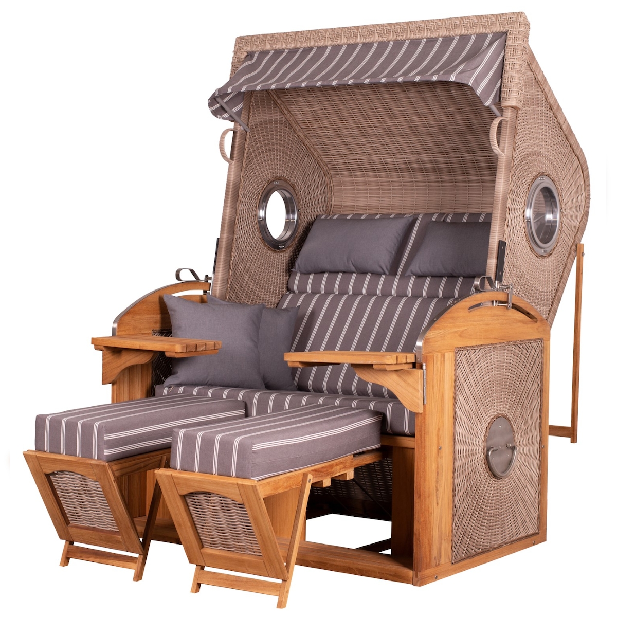 dekoVries GmbH Strandkorb deVries PURE® Friesland Sylt XL - PE white kubu - Dessin 466 - inkl. Schutzhülle