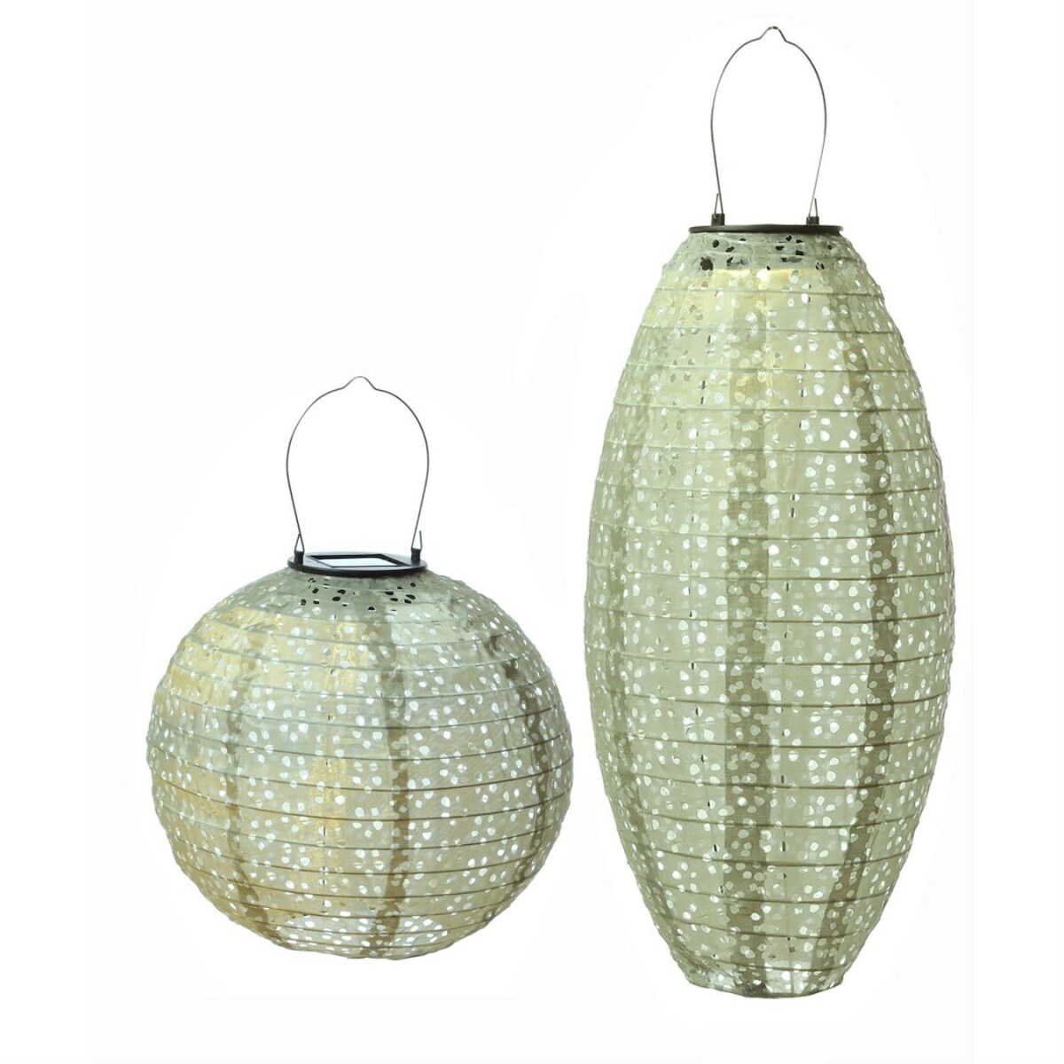 MARELIDA LED Solar Lampion oval mit Blumenmuster grün H:40cm Balkon Terrasse