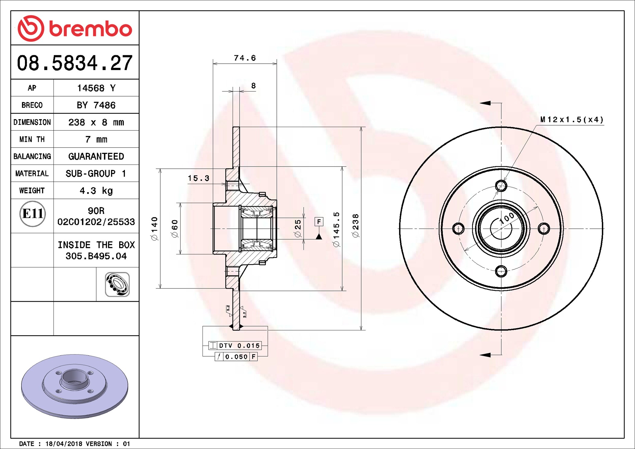 Brembo Bremsensatz-Vorderachse Coated Disc Line / Standard Ijdtiddap2 Bremsensatz, Scheibenbremse Vorne Rechts Links Voll 260mm Für Renault Dacia Smar