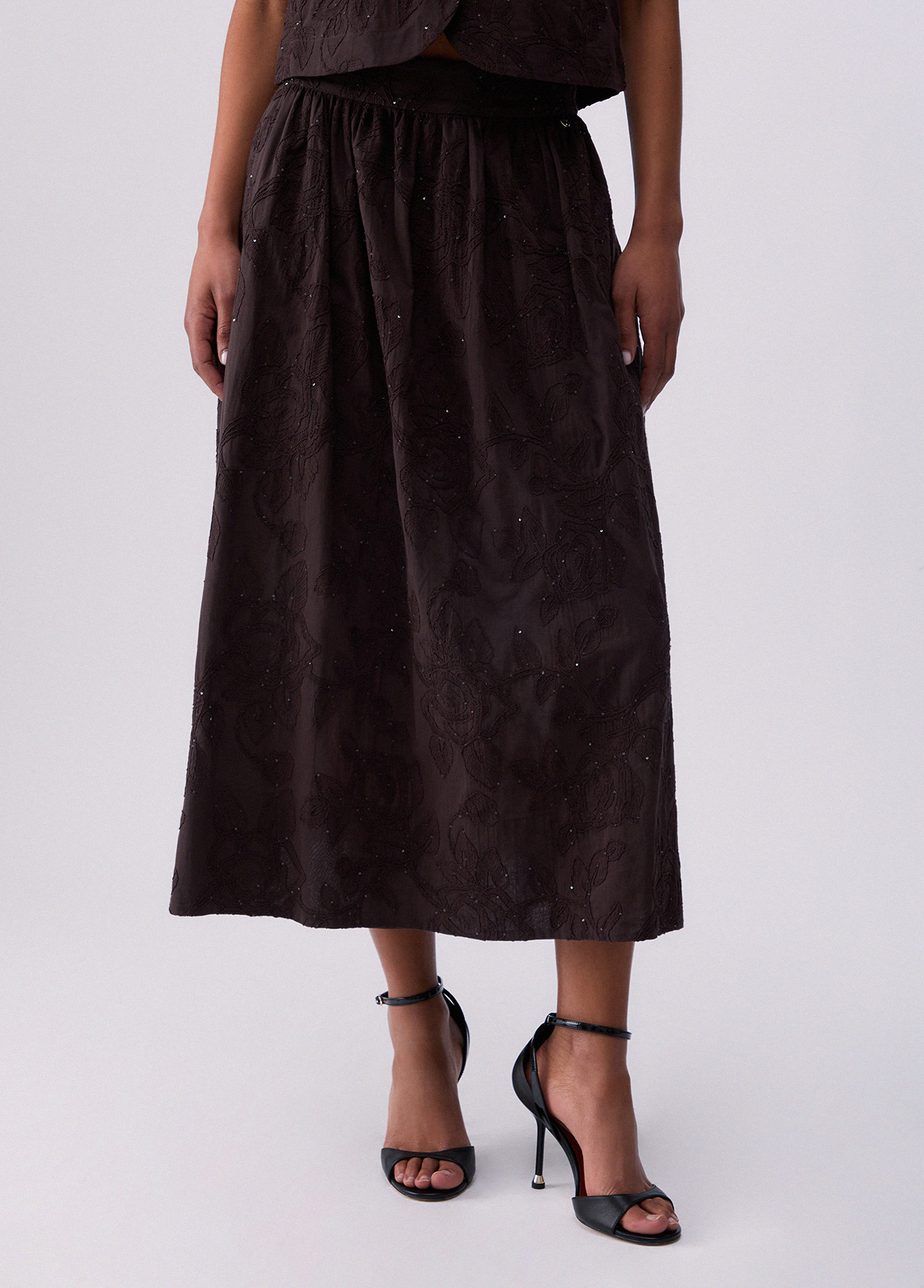 Liu Jo Gonna In Mussola Con Ricami, Marrone Scuro, 38