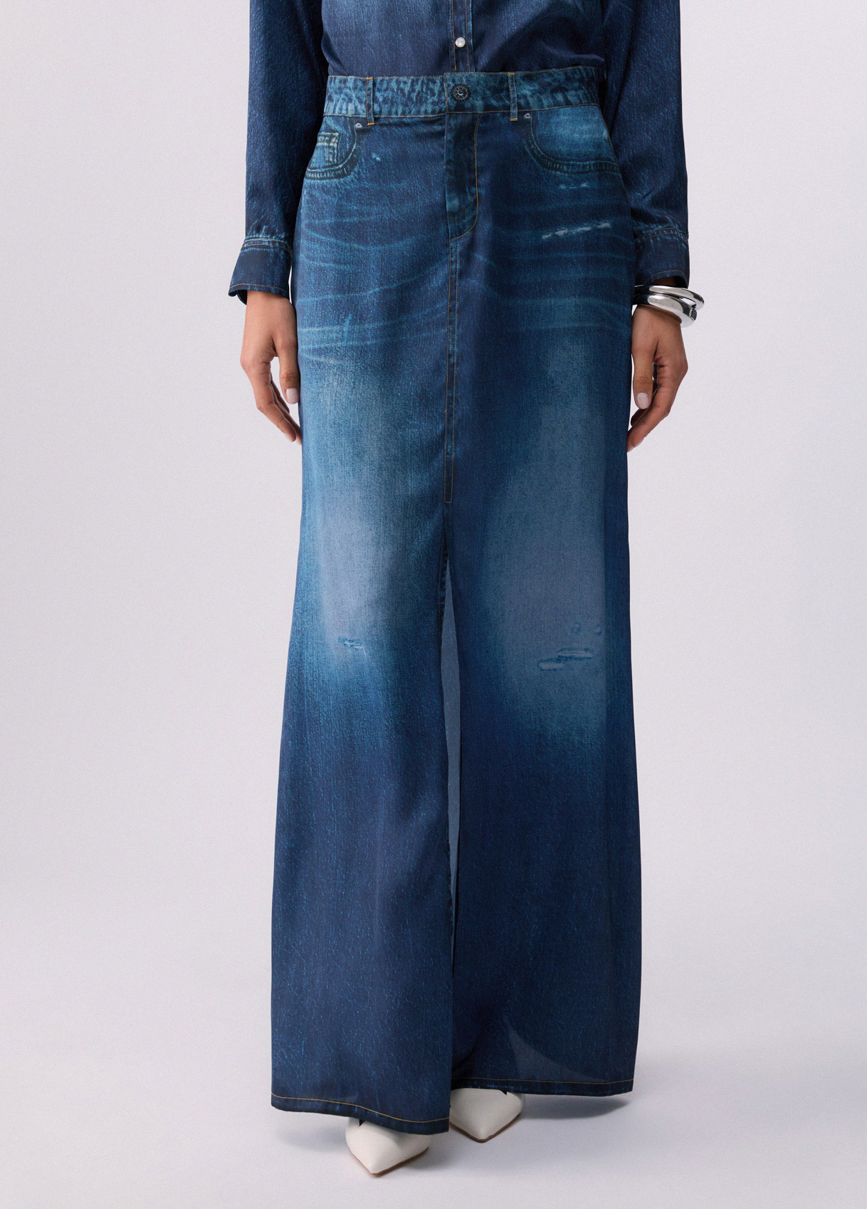 Liu Jo Gonna Lunga Con Stampa Digitale, Denim Blu, 26