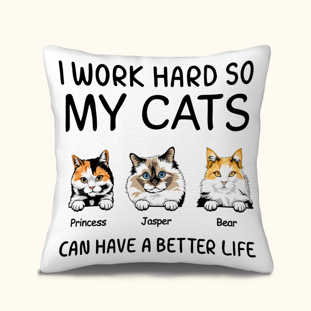 Personalizzato I Work Hard So My Cats Can Have A Better Life Throw Pillow Cover Festa del papà Decorazione per la casa