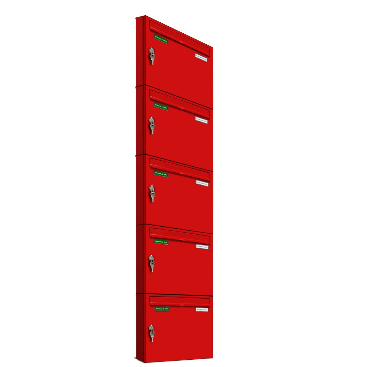 AL Briefkastensysteme 5 x Basic Wand Briefkasten in RAL Farbe 3000 Feuer Rot für Post A4, wetterfest, Artikelnummer: 431P5EA1P3000