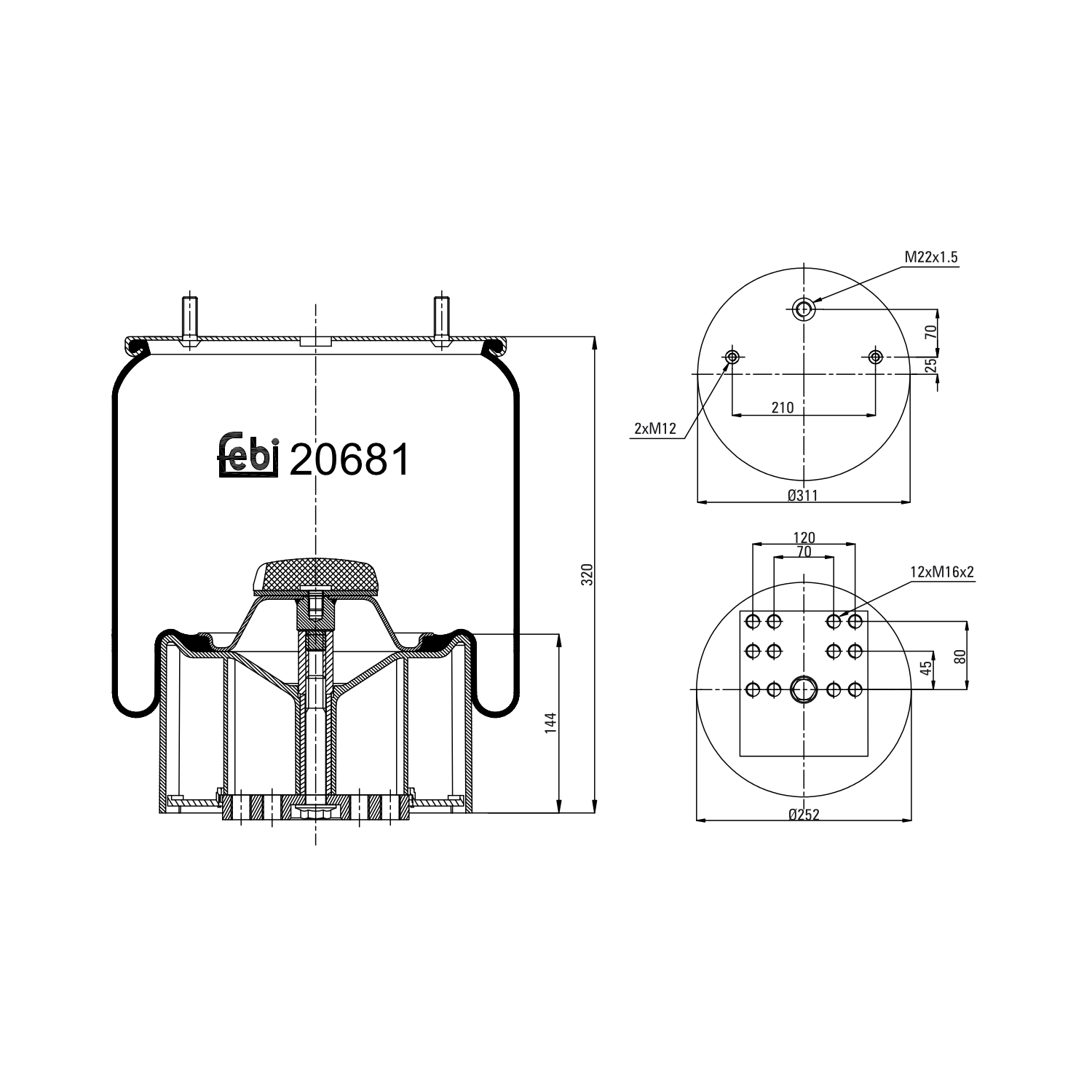 FEBI BILSTEIN Federbalg, Luftfederung 20681 Universal mit Kolben 311mm