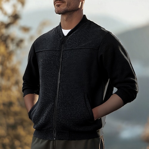 Per uomo Maglia Felpa con zip Felpa in pile Felpa con zip intera Nero Bianco Vino Verde militare Blu marino Colletto Mao Semplice Con zip Tasca Sport Outdoor Quotidiano Ferie Poliestere Streetwear