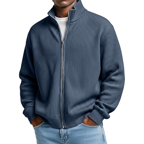 Per uomo Maglia Felpa con zip Felpa con zip intera Blu Blu denim Nero Vino Verde militare Colletto Mao Semplice Con zip Tasca Sport Outdoor Quotidiano Ferie Poliestere Streetwear Essenziale Casual