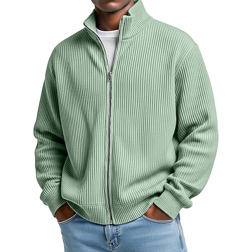 Per uomo Maglia Felpa con zip intera Nero Bianco Vino Blu marino Grigio chiaro Colletto Mao Semplice Jacquard Con zip Sport Outdoor Quotidiano Ferie Poliestere Streetwear Essenziale Casual Autunno