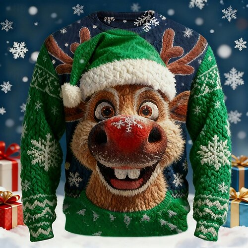 Maglione di Natale brutto Per uomo Ogni Stampa Maglione Maglieria Girocollo Casual Quotidiano Vacanza Tenere al caldo Manica Lunga Primavera Autunno Inverno Blu Nero Rosso