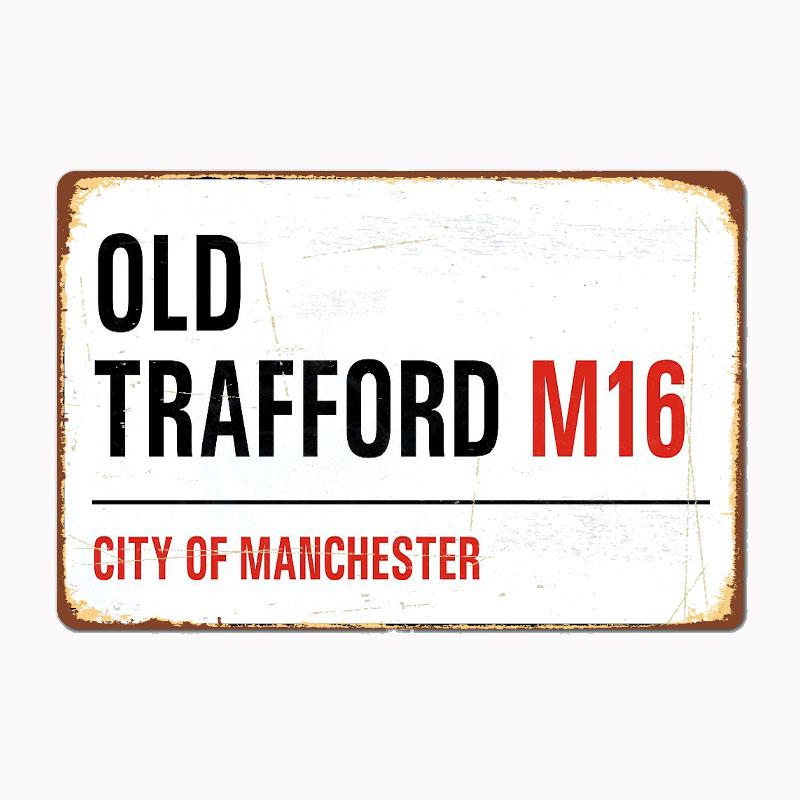 Old Trafford Street Sign Metal Sign Poster Garage Room Decor Automobile Club Custom Tin Vintage Home Decor