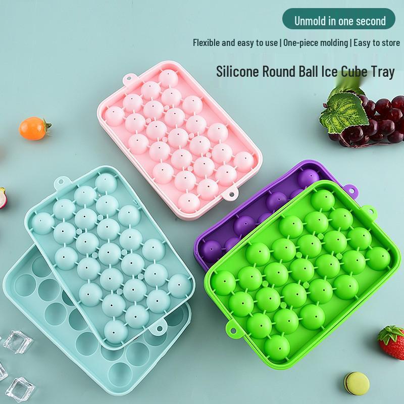 Silicone 25-Cell Round Ice Ball Tray & Grape Soap Mold Set