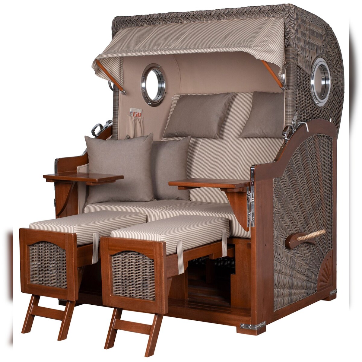 Mr. Deko Strandkorb Komplettset - bene living - Ammersee Mahagoni Bullauge - PE grau - Modell 510 - inkl. Liftersystem
