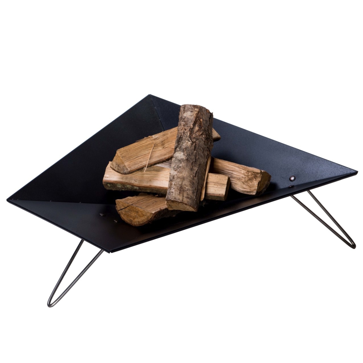 VASNER Merive M3 Feuerschale schwarz mit drei Edelstahl Hairpin Beinen, offenes Design mit 360° Wärmeabgabe
