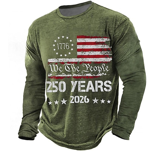 250° anniversario dell'America Per uomo 250° anniversario degli Stati Uniti Maglietta Manica Lunga maglietta Stampa 3D Girocollo Camicia Quotidiano Casual Quotidiano Viaggio Feste Blu Nero Verde