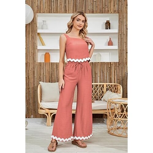 pantaloni canotta da donna con orlo ondulato, abito casual alla moda