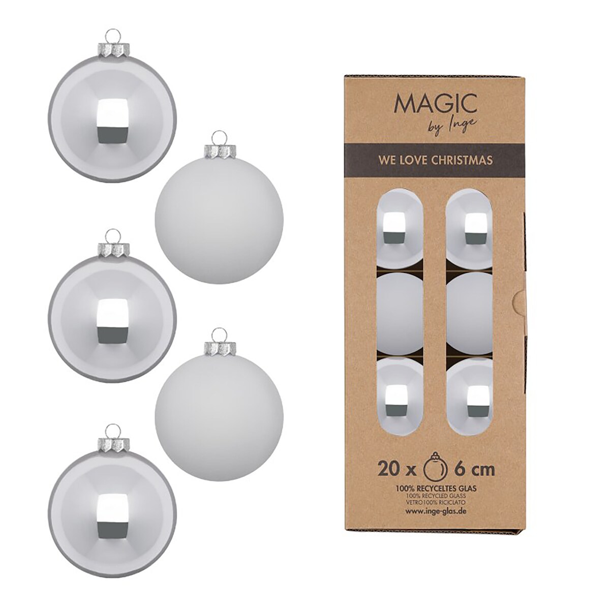 20 Weihnachtskugeln Glas 6cm matt & glänzend Christbaumkugeln Weihnachtsbaumkugeln Weihnachten Christbaumschmuck Weihnachtsbaumschmuck Silber Hellgrau