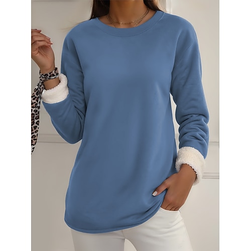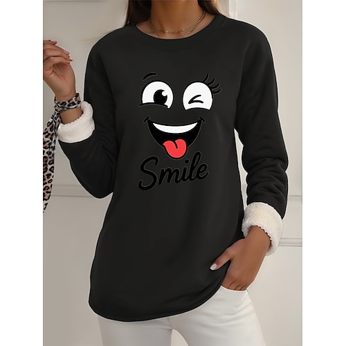 Per donna Pigiama felpato foderato in pile Felpa Pullover Pullover Felpe Semplice Caldo Streetwear Casual Manica Lunga Girocollo Top Regolari Casa Abbigliamento Quotidiano Casuale Stampato Nero