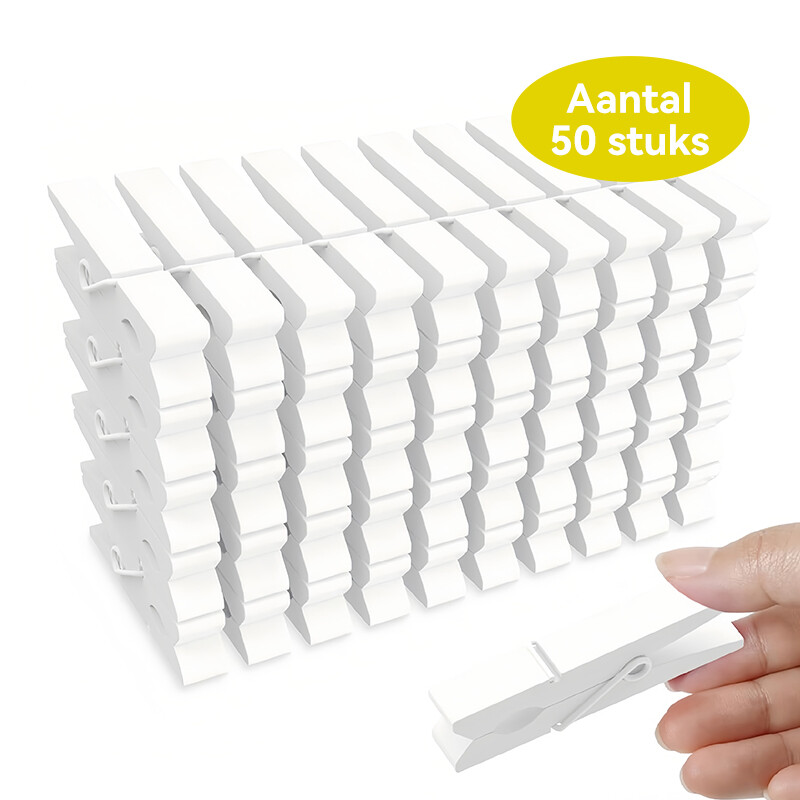 JORDAN&JUDY Pinces à vêtements en bois / pinces photo, lot de 50, pinces de séchage, résistantes au vent, blanches