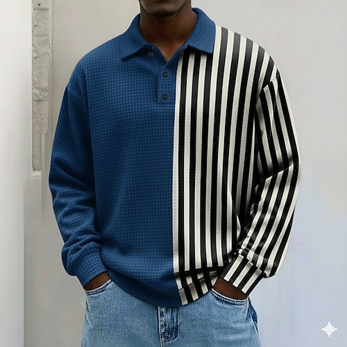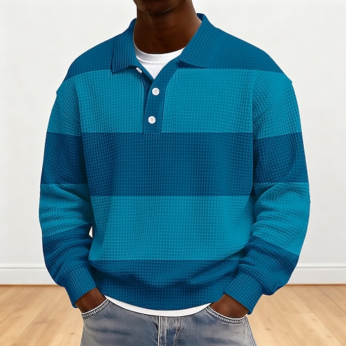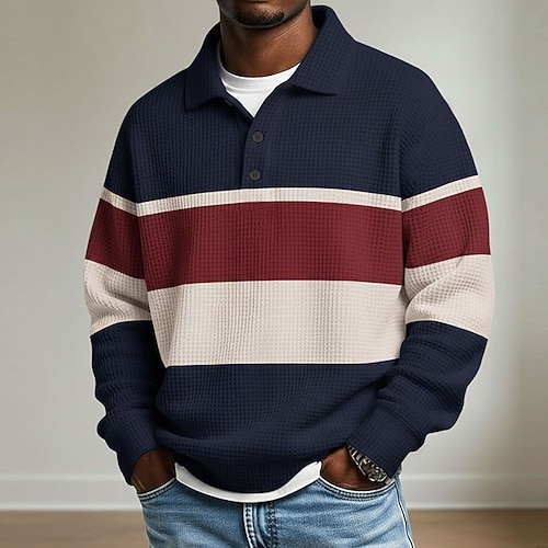 Per uomo Strisce orizzontali Magliette Polo a Nido d'Ape Polo da rugby Testurizzato Manica Lunga Magliette polo Bavero Abbigliamento Sportivo Casual Scuola Athleisure Abbigliamento quotidiano Stampa