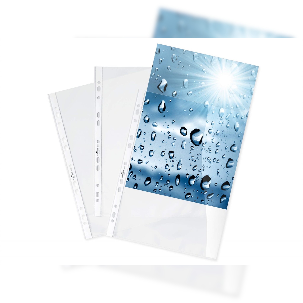 DURABLE Premium Prospekthüllen DIN A4 Genarbt Transparent 80 Mikron PP (Polypropylen) Öffnung oben 11 Löcher 2682 50 Stück