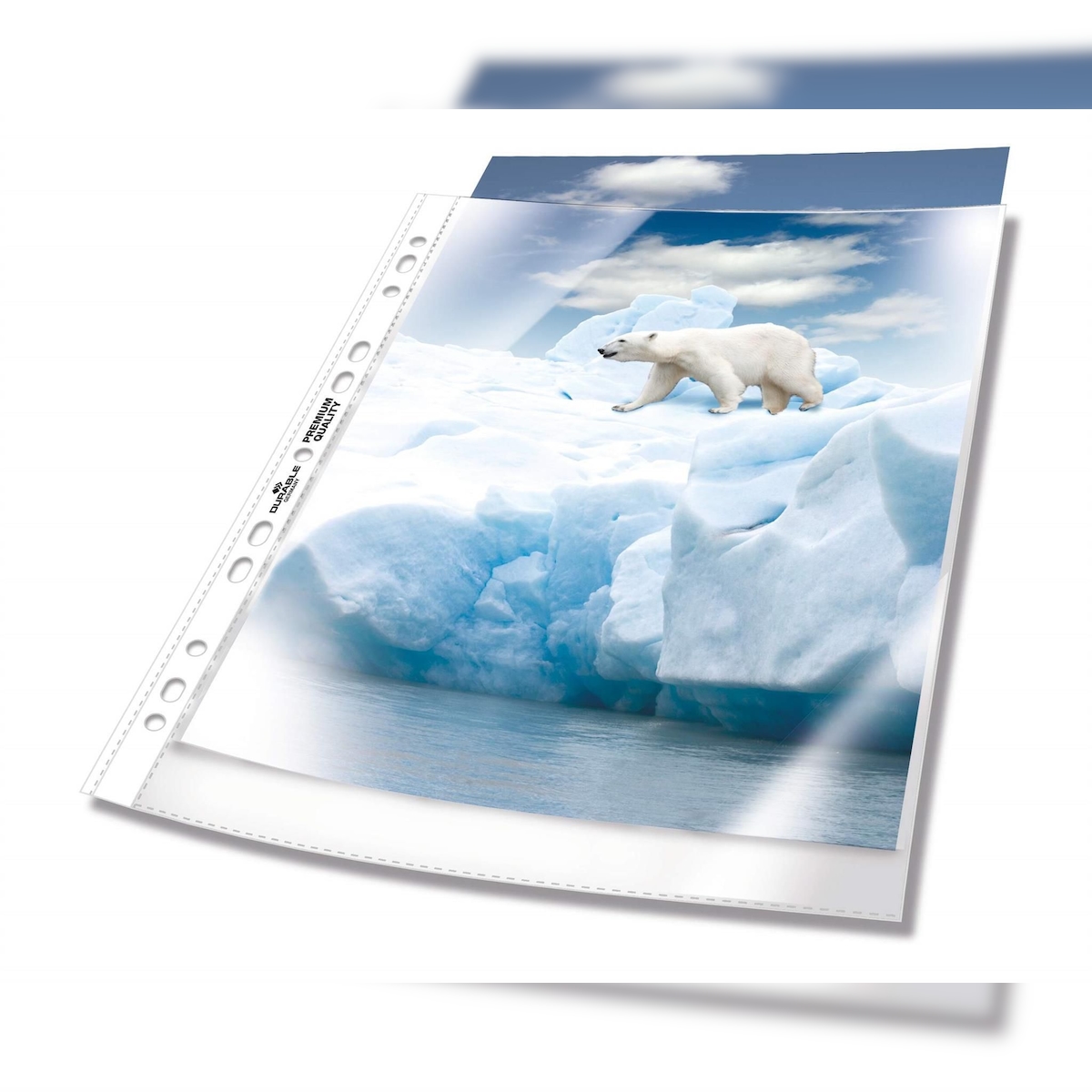 DURABLE Premium Prospekthüllen DIN A4 Glasklar Transparent 60 Mikron PP (Polypropylen) Öffnung oben 11 Löcher 267219 100 Stück