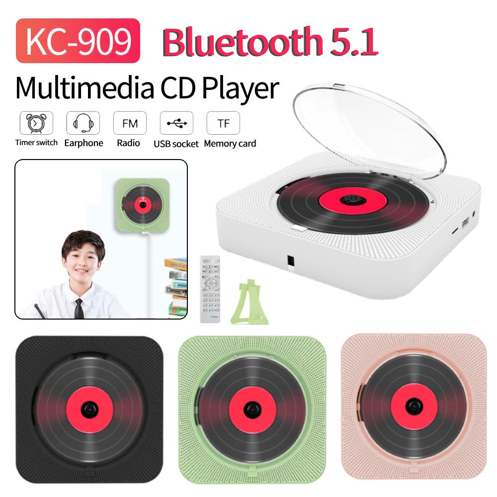 KC-909 Tragbarer CD-Musikplayer Wandmontage Bluetooth 5.1 Stereo-Lautsprecher CD-Player UKW-Radio Infrarot-Funkfernbedienung