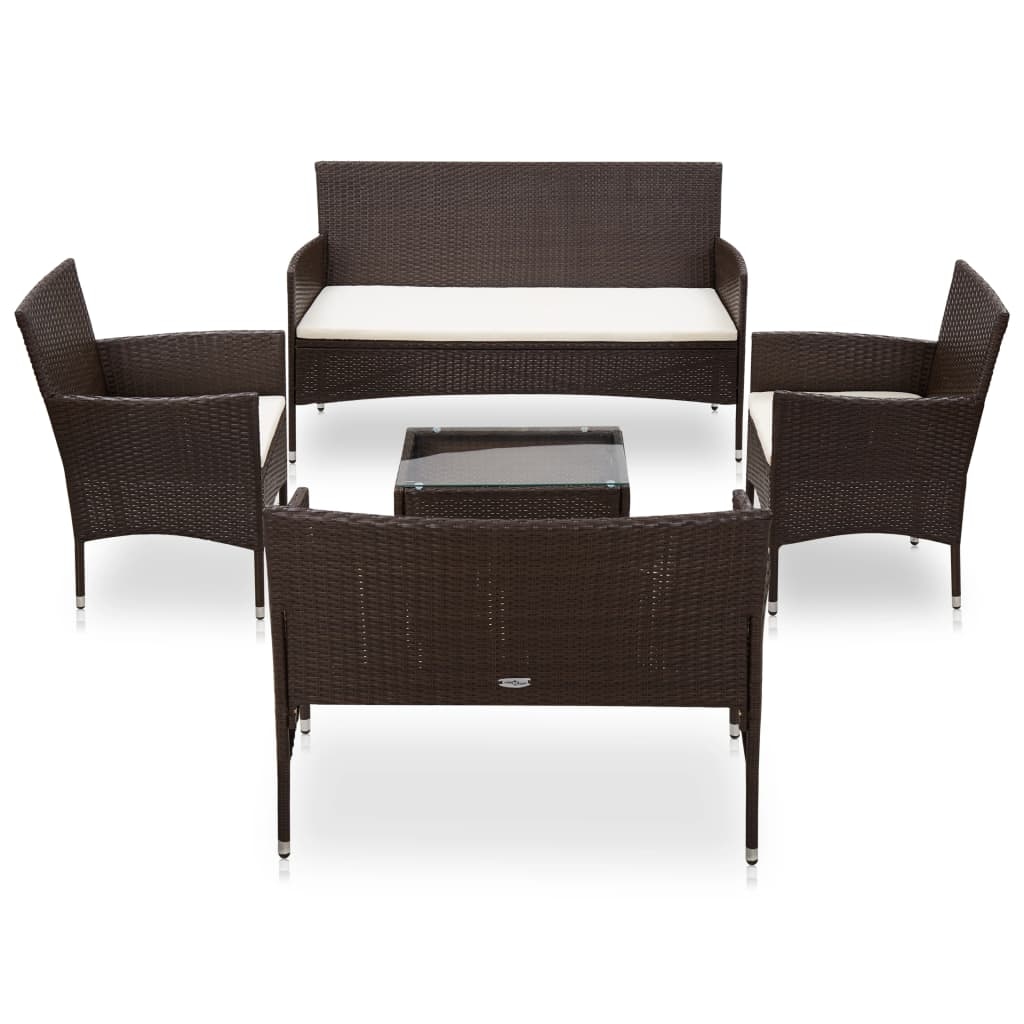 vidaXL 5-tlg. Garten-Lounge-Set mit Auflagen Poly Rattan Braun