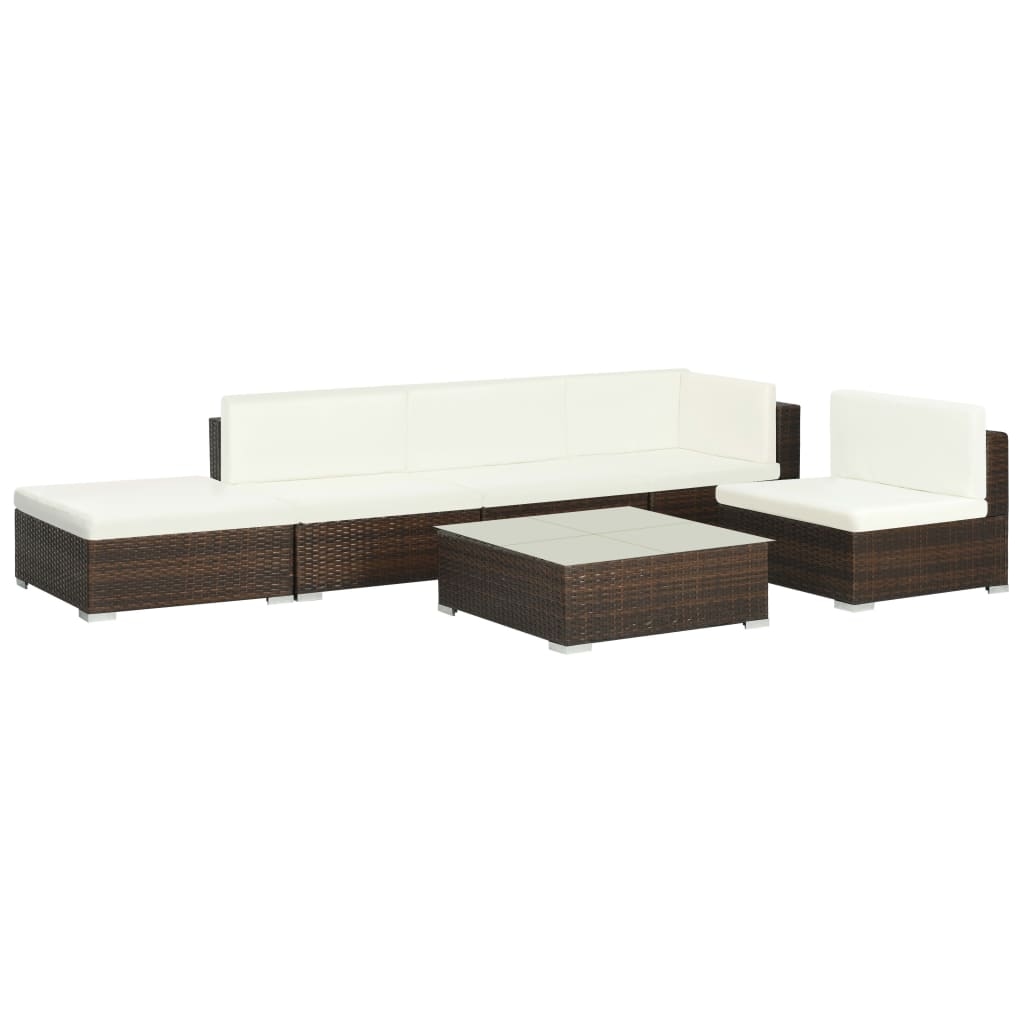 vidaXL 6-tlg. Garten-Lounge-Set mit Auflagen Poly Rattan Braun