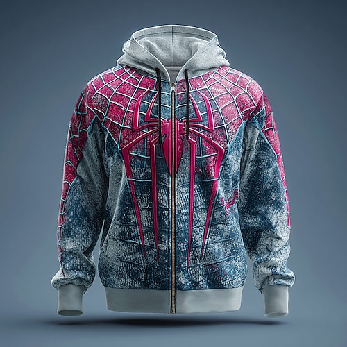 Felpa con Cappuccio Spider 3D da Uomo Punk Cool Collo a Girocollo Regalo Party Streetwear Blu Viola Coulisse Cerniera Autunno Inverno Designer