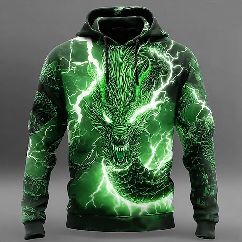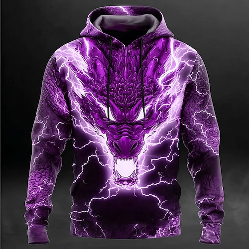 Per uomo Drago Stampa 3D Felpa con Cappuccio Felpa 3D Fantasia Manica Lunga Girocollo Regalo Club Abbigliamento casual alla moda Rosso Blu Viola Verde Coulisse Autunno Inverno progettista S M L XL