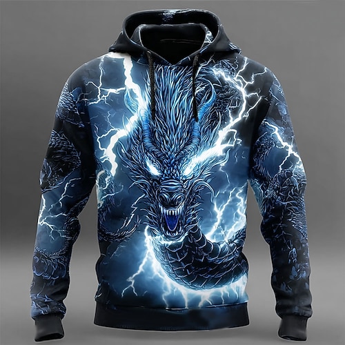 Per uomo Drago Stampa 3D Felpa con Cappuccio Felpa 3D Fantasia Manica Lunga Girocollo Regalo Club Abbigliamento casual alla moda Blu Viola Marrone Verde Coulisse Autunno Inverno progettista S M L XL