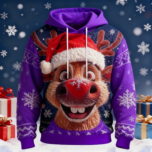 Natale Per uomo Ogni Felpa con Cappuccio Felpa Moda Quotidiano Casual Manica Lunga Girocollo Con Cappuccio Casa Feste Regalo Blu Rosso Viola Verde Coulisse Autunno Inverno progettista S M L XL XXL