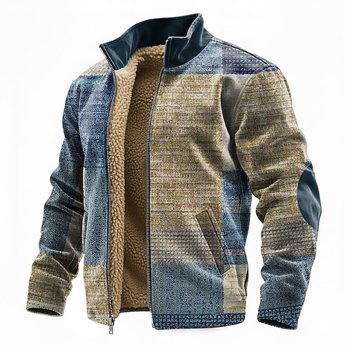 Per uomo Geometrico Plaid Pile Felpa Moda Quotidiano Semplice Casual Collo alla coreana Con cerniera All'aperto Vacanza Regalo Uscire Blu Viola Cachi Grigio Tasca Cerniera frontale Autunno Inverno