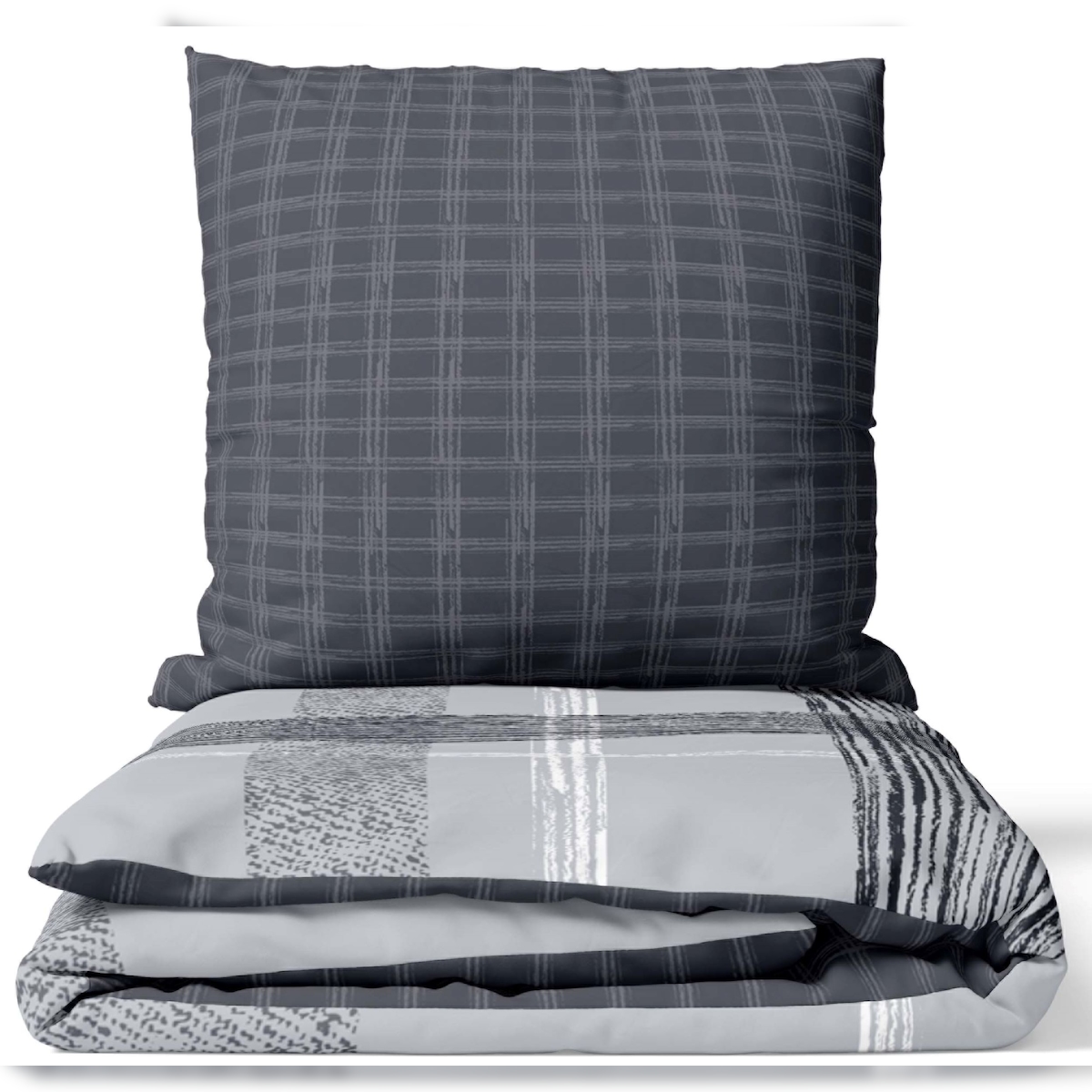Leonado Vicenti Baumwolle Bettwäsche 135x200 cm Gestreift Grau Anthrazit Wendeseite Streifen mit Reißverschluss