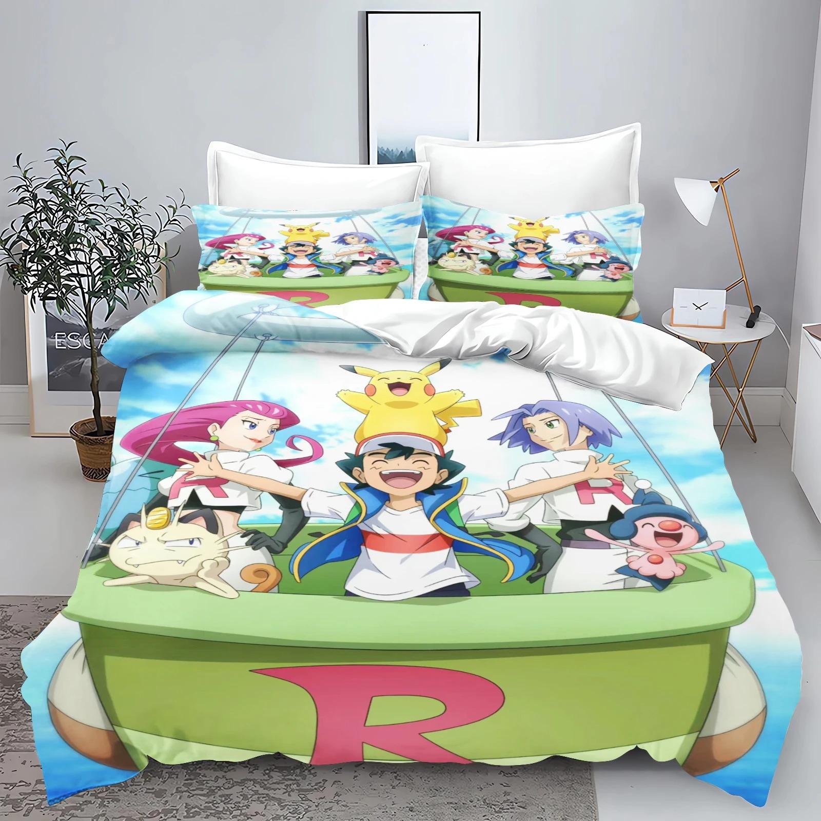 Pokémon Pikachu Series Bedding Set Cartoon Print Duvet Cover Pillow Case, Room Duvet Cover Set Decoration, Large King 260x240cm