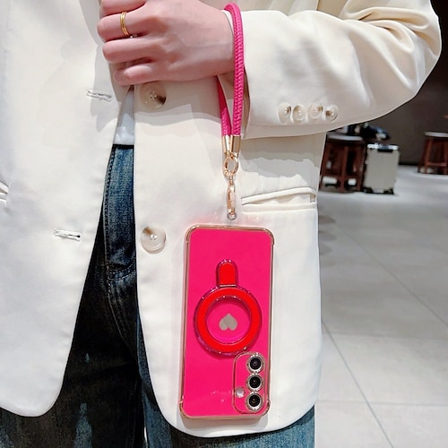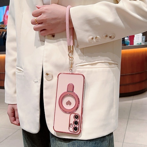 telefono Custodia Per Samsung Galaxy S21 FE A16 A25 A15 A14 A34 A24 A53 A33 A13 Copertura Posteriore Con Cinturino da Polso Resistente agli urti Retrò TPU Placcatura