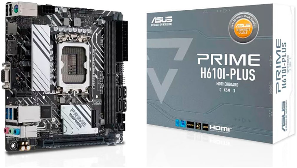 ASUS Mainboard "PRIME H610I-PLUS-CSM", silber (schwarz, silber), B:17,02cm H:3,65cm T:17,02cm, Mainboards