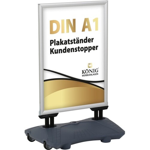 Dreifke Plakatständer Kundenstopper Keitum Wind Line Plus DIN A1 silber | beidseitig | stabiler Fuß für sicheren Stand | entspiegelte Schutzscheiben | Gehw
