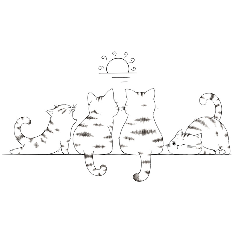 Cute kitten watching the sunset - simple and refreshing wall sticker. Cartoon cat animal wall sticker, removable vinyl material, easy to peel and stick. Suitable for living room, children's room, bedroom, sofa, and TV background wall.
