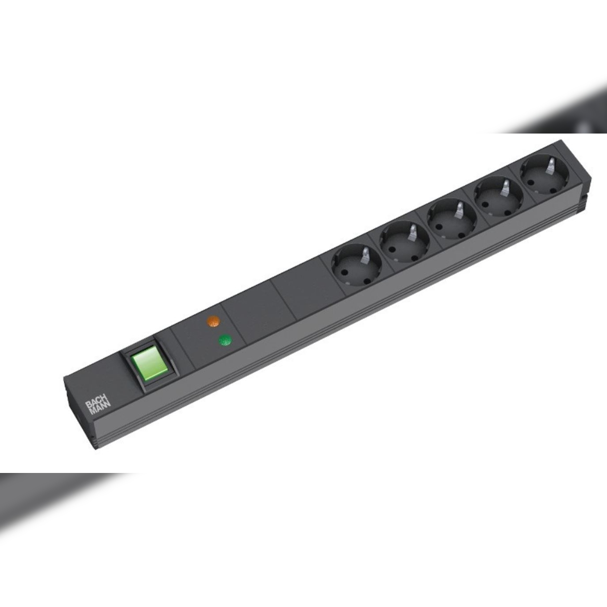 Bachmann 19"-Steckdosenleiste ALU 1HE ÜSS, 5-fach, schwarz 2,0m, mit Schalter